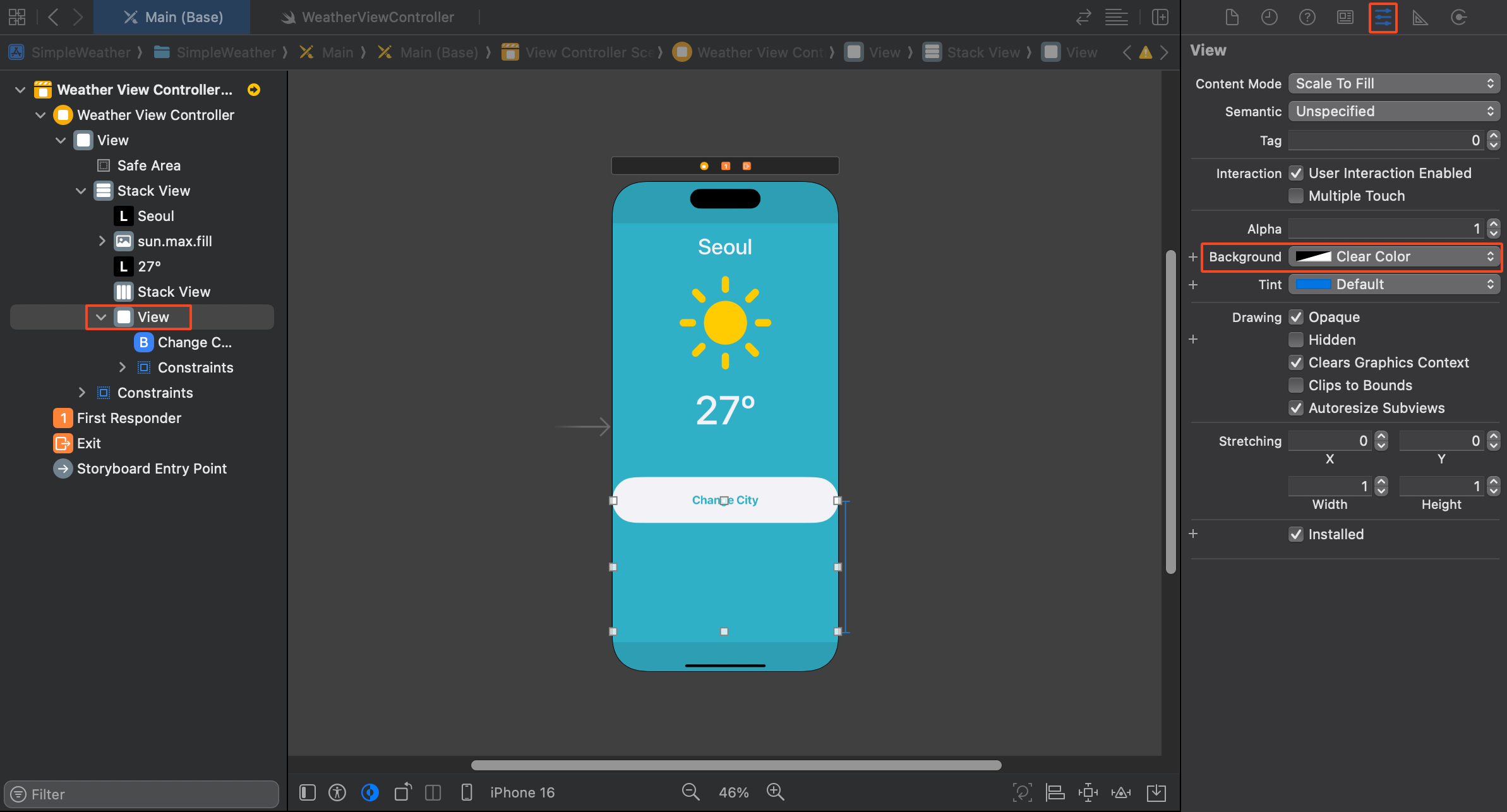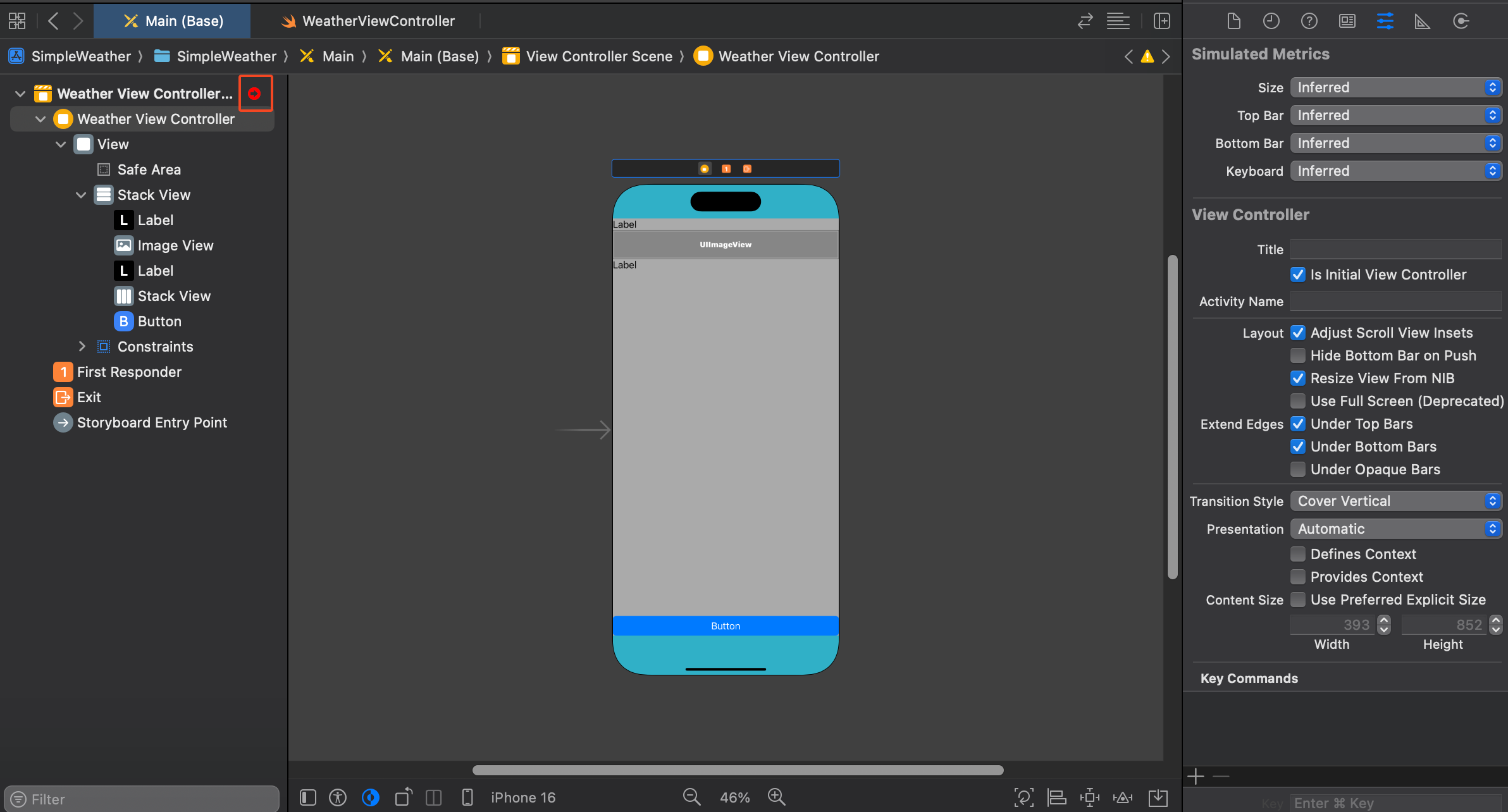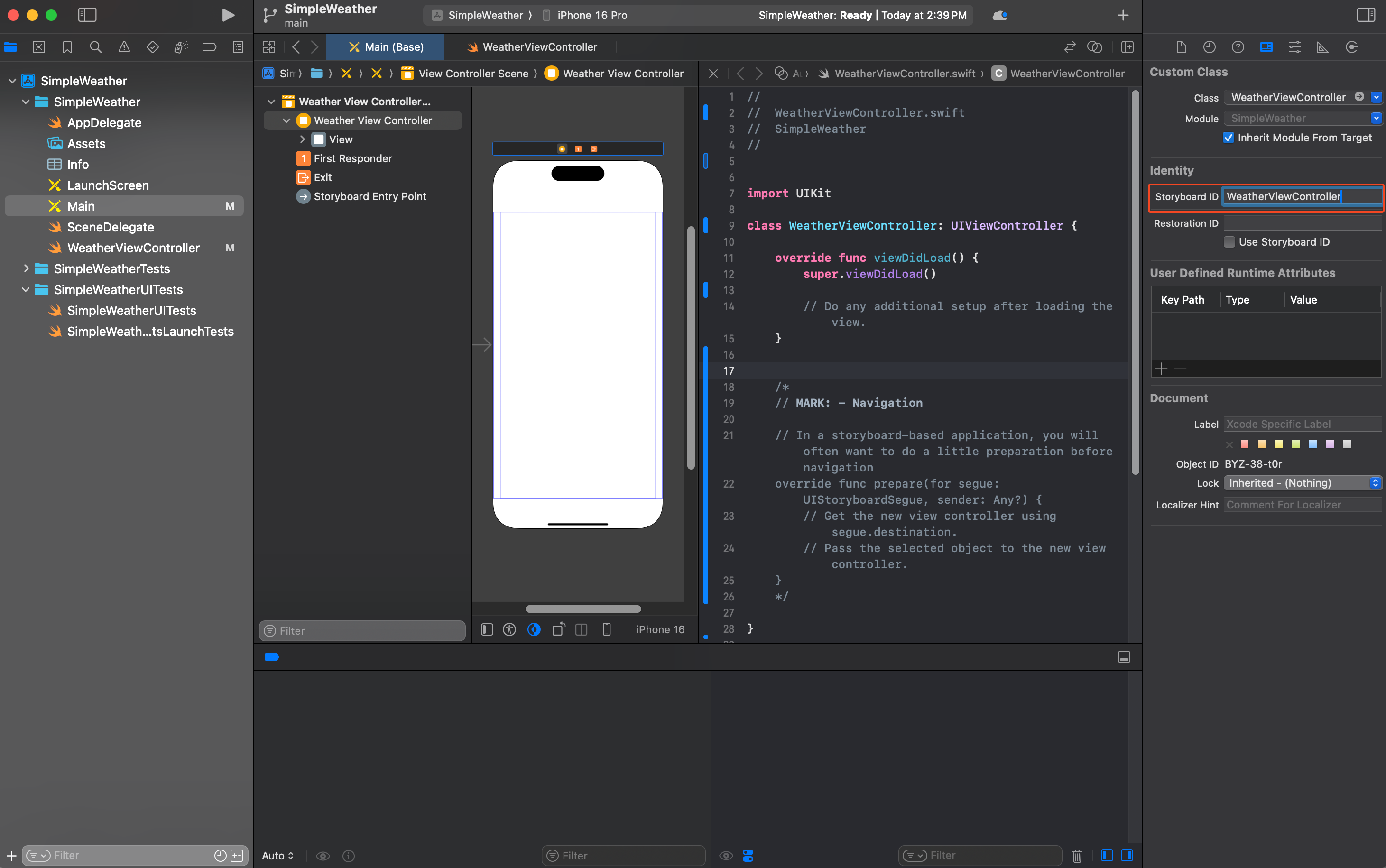 Storyboard ID에도 똑같이 WeatherViewController 이름으로 넣어준다.