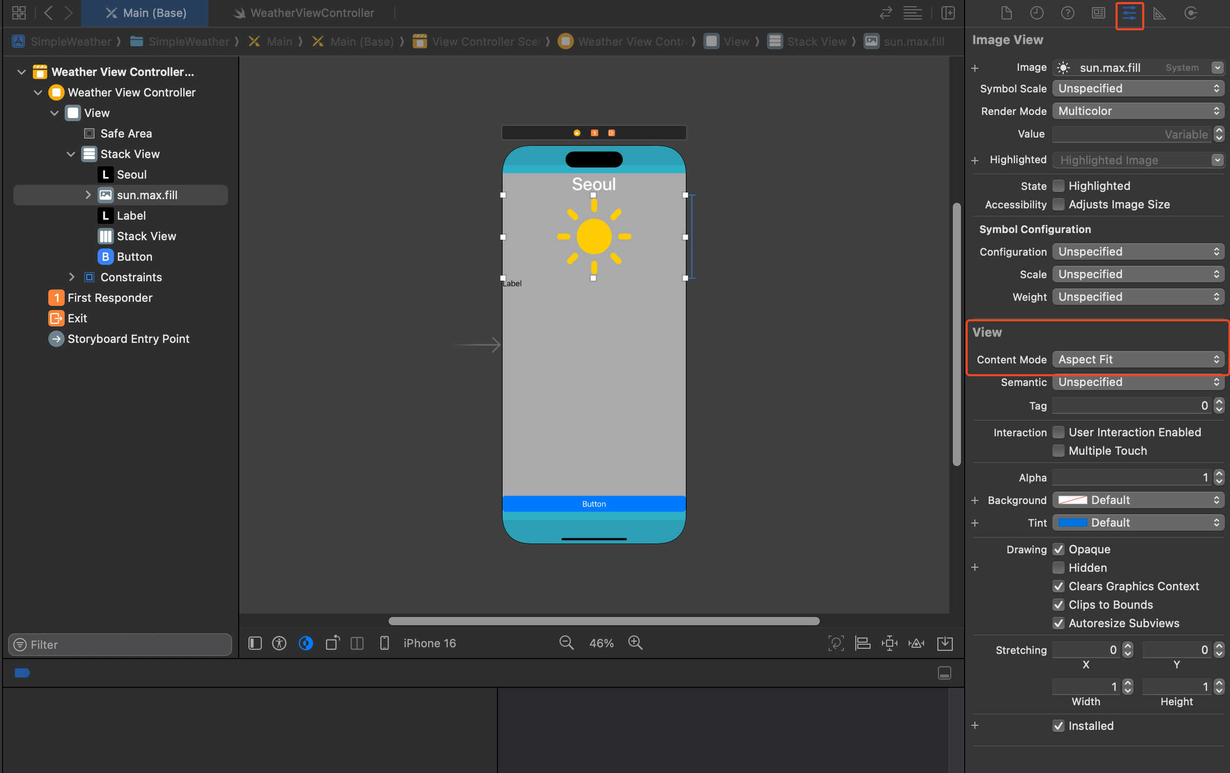 Aspect Fit은 상황에 맞게 비율 고정을 유지하면서 넣어주는 기능이라고 생각하면 쉽다. 이미지 사용 시 Aspect Fit 사용을 권장.