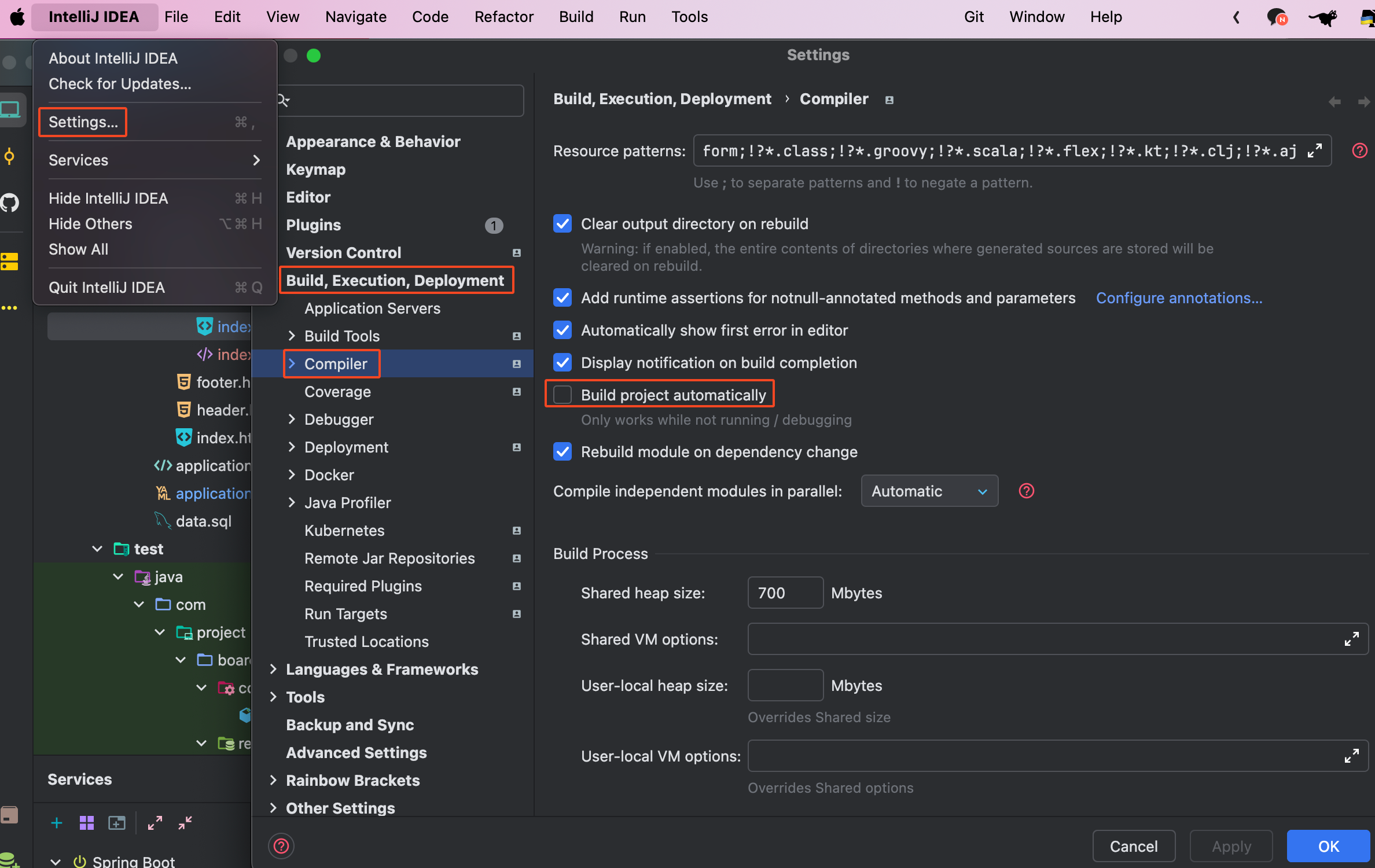 Intellij는 자동 빌드가 설정되어 있지 않으므로, 자동 빌드(Auto Compile) 옵션과 DevTools 등 관련된 내용을 정리해보았다.
